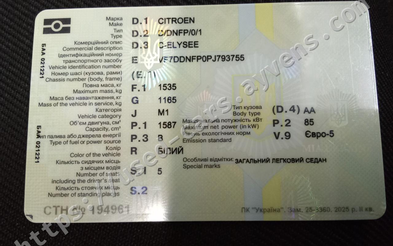 ДАНІ ТРАНСПОРТНОГО ЗАСОБУ