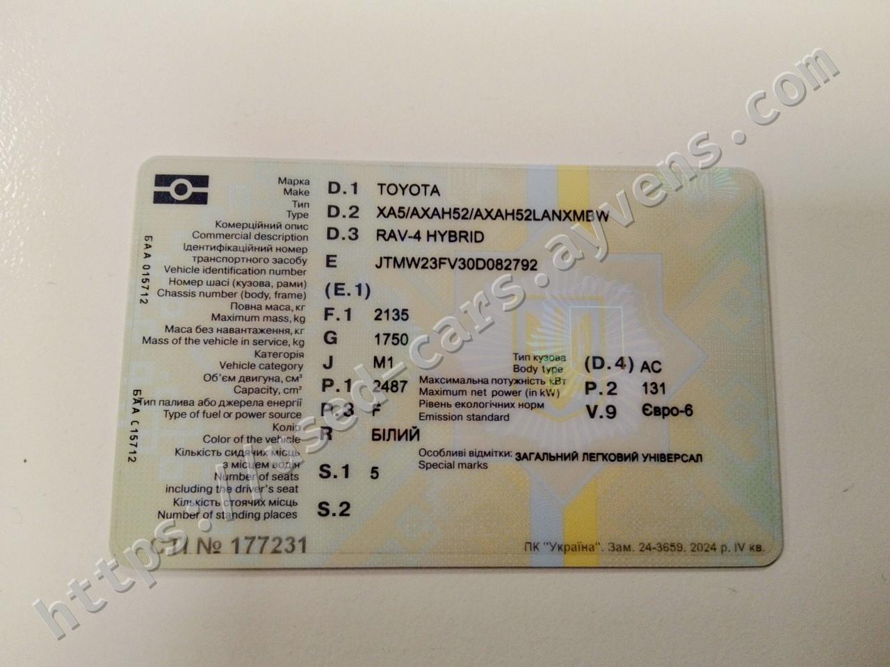 ДАНІ ТРАНСПОРТНОГО ЗАСОБУ
